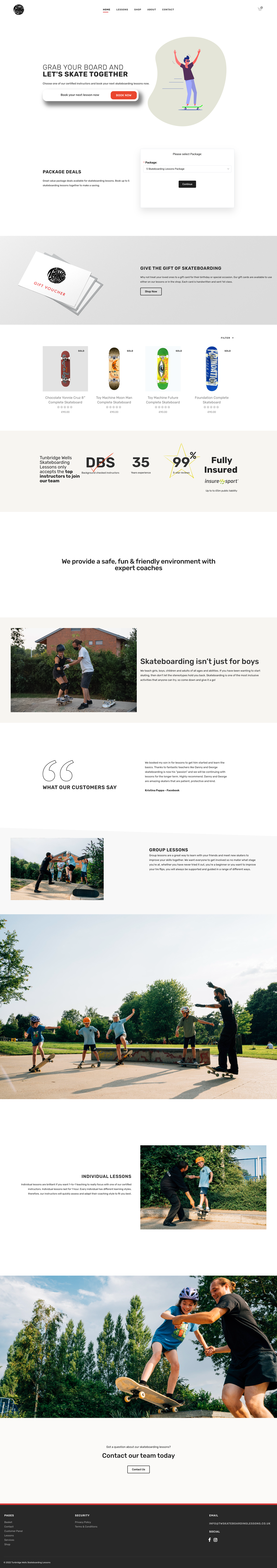 This project I worked on for Tunbridge Wells Skateboarding Lessons was to build a booking platform website with an online shop. The project was a huge success, as the new website dramatically improved the booking process and made it much simpler and more efficient for both customers and the business. By integrating a booking system and an online shop into the website, we were able to streamline the entire process, making it easier for customers to book lessons and purchase skateboarding equipment.